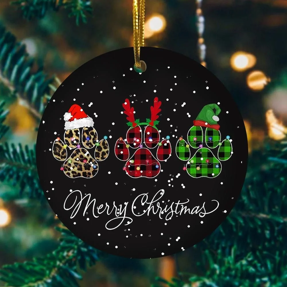 Personalized Dog Paw Merry For Dog Lovers Christmas 2022 – Double Sided Ceramic Ornament