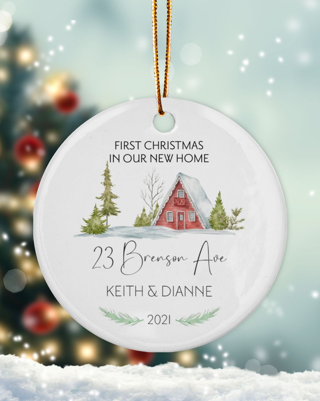 Personalized First In Our New Home With Address- Names And Yea Christmas 2022 – Double Sided Ceramic Ornament