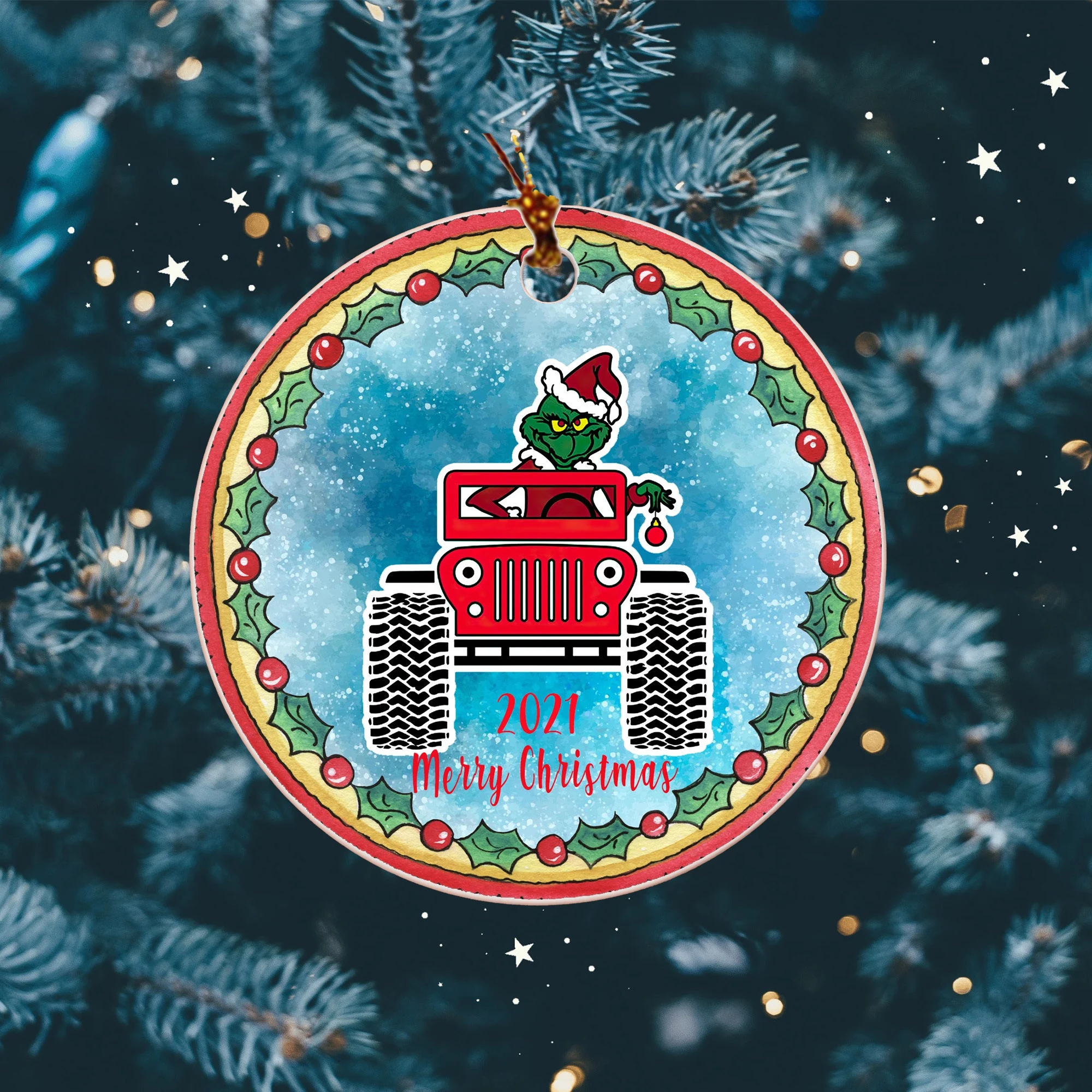 Personalized Green Man Truck – Car Christmas Tree Christmas 2022 – Double Sided Ceramic Ornament