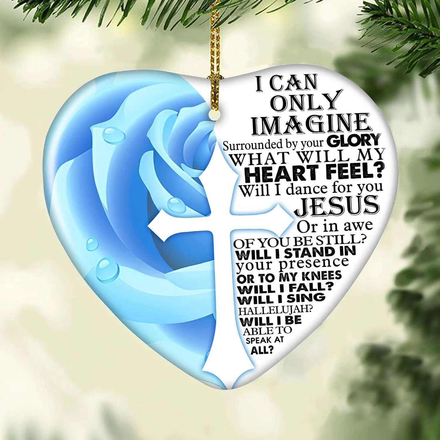 Personalized Jesus – Half Rose With Cross – I Can Only Imagine Christmas 2022 – Double Sided Ceramic Ornament