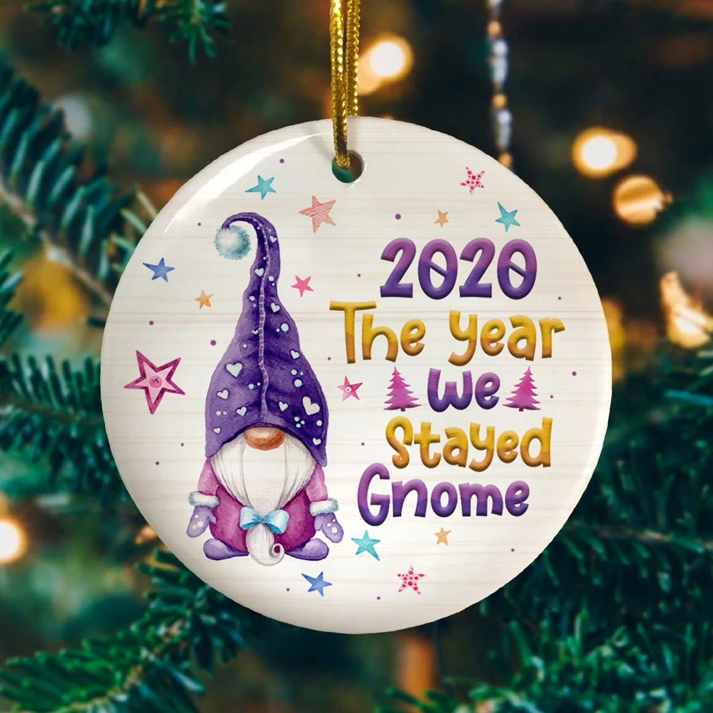 Personalized The Year We Stayed Gnome Christmas 2022 – Double Sided Ceramic Ornament